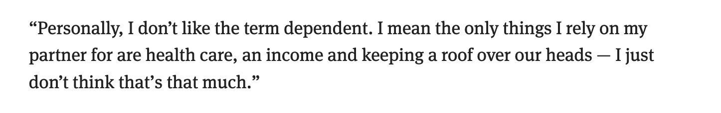 While this can be, at times, filled with frustration, when I approach writing jokes about it I try to maintain an optimistic and tongue in cheek approach. For example, since we’re often referred to as “dependents”, I’ve been playing around with bits and jokes about what that term means and trying to turn it on its head.
